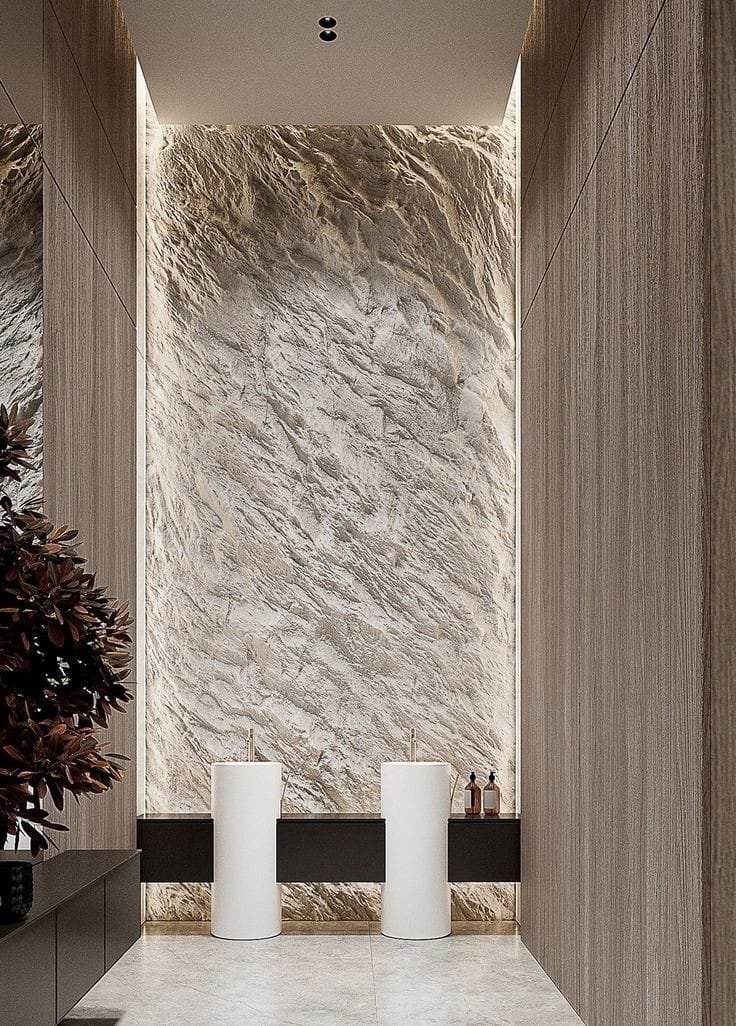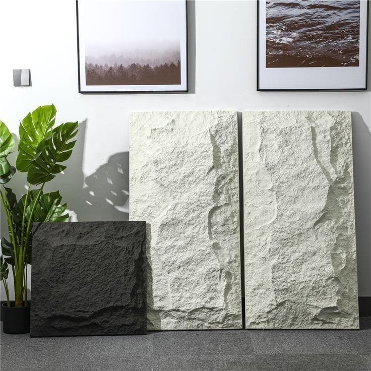 - كذلك إستخدام بديل الحجر للجدران يعطي تأثيرات و طبعات مختلفة لكي تحاكي مظهر الحجر الطبيعي .