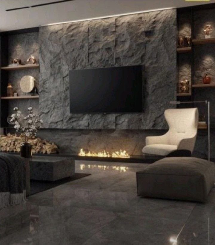 2. كذلك إستخدام بديل الحجر للجدران يعطي تأثيرات و طبعات مختلفة لكي تحاكي مظهر الحجر الطبيعي .